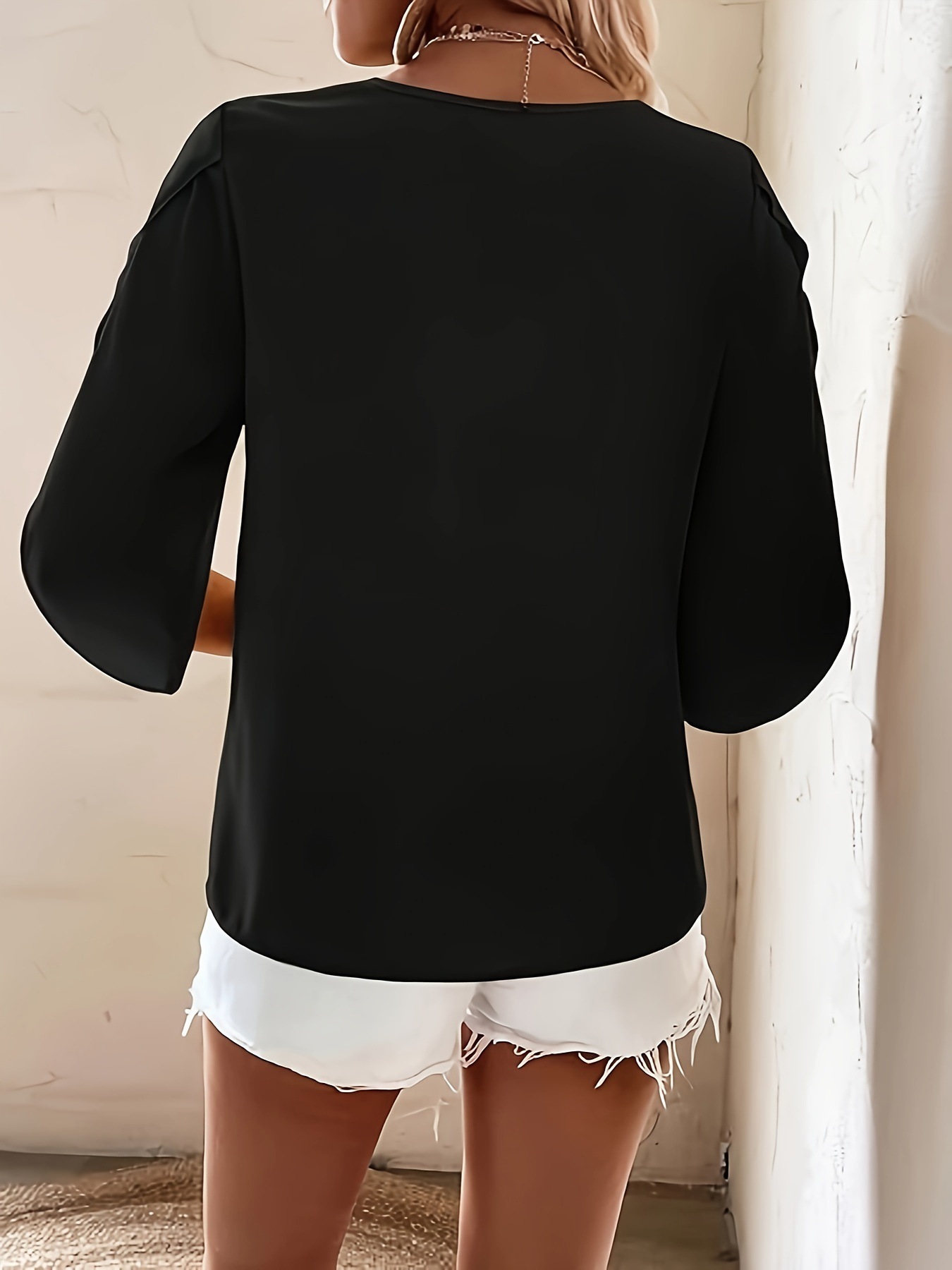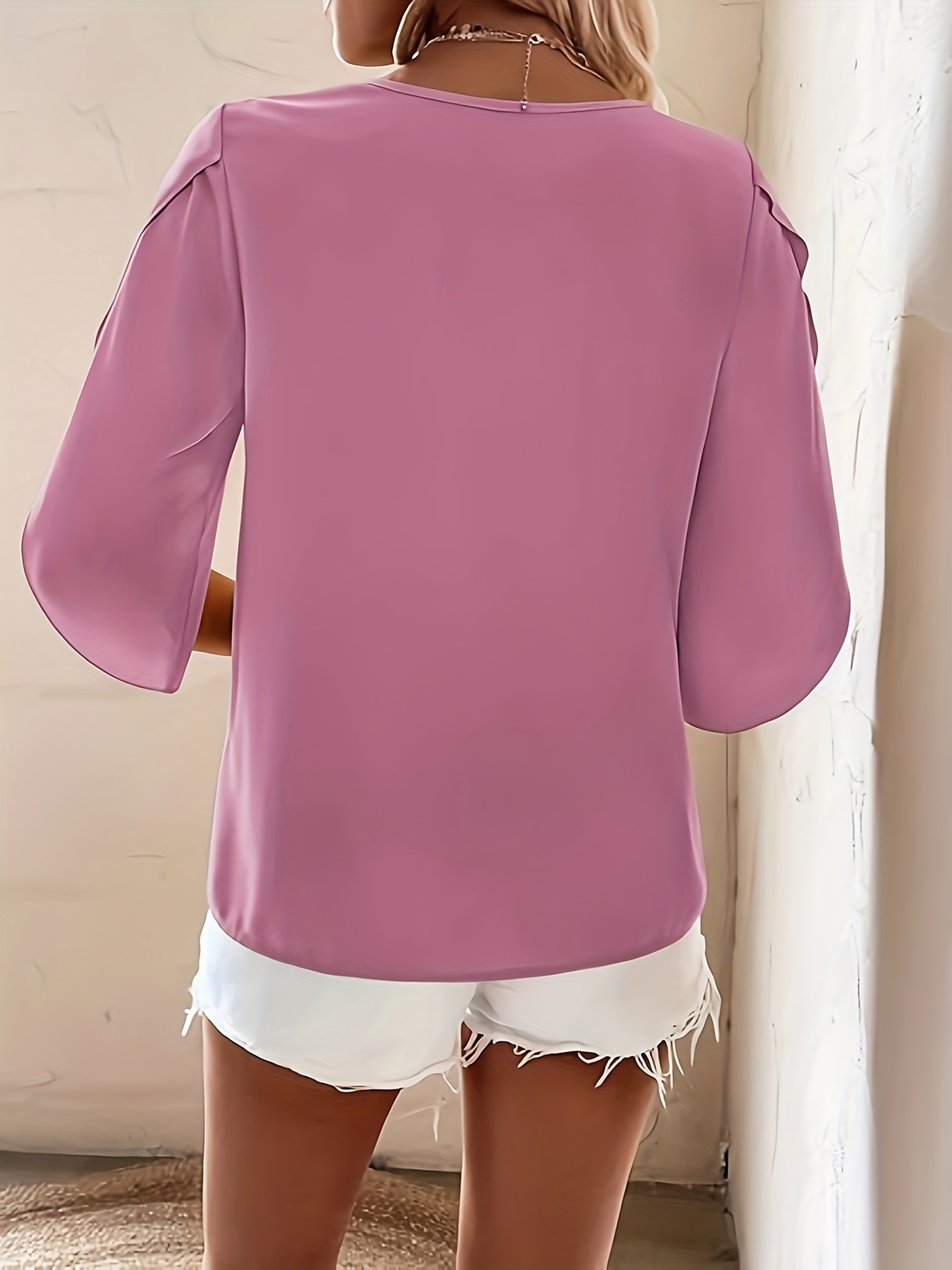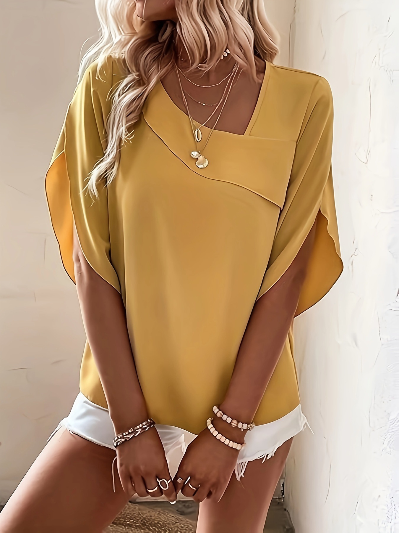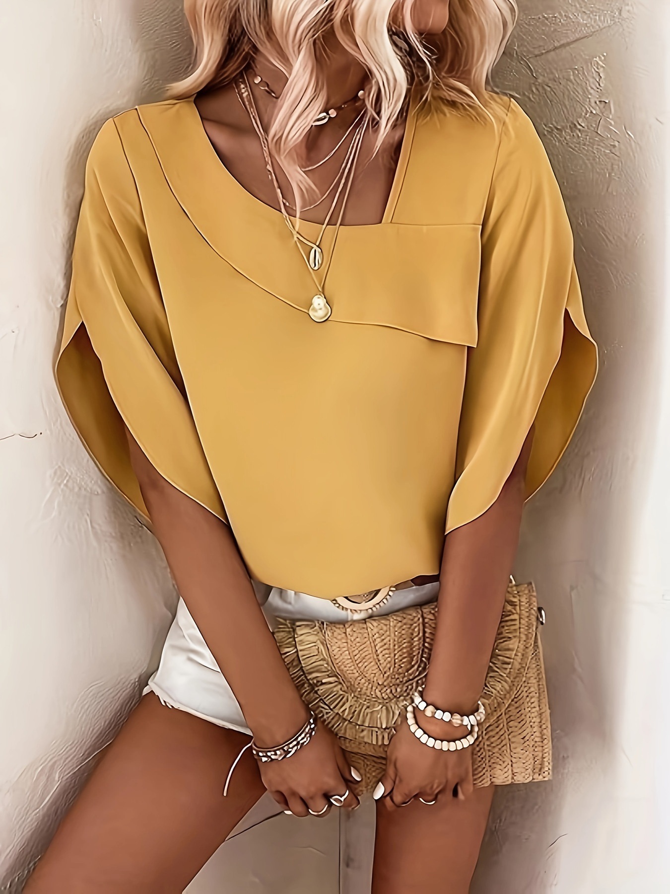 Elegant Casual Loose Petal Half Sleeve Asymmetric Collar Shirt