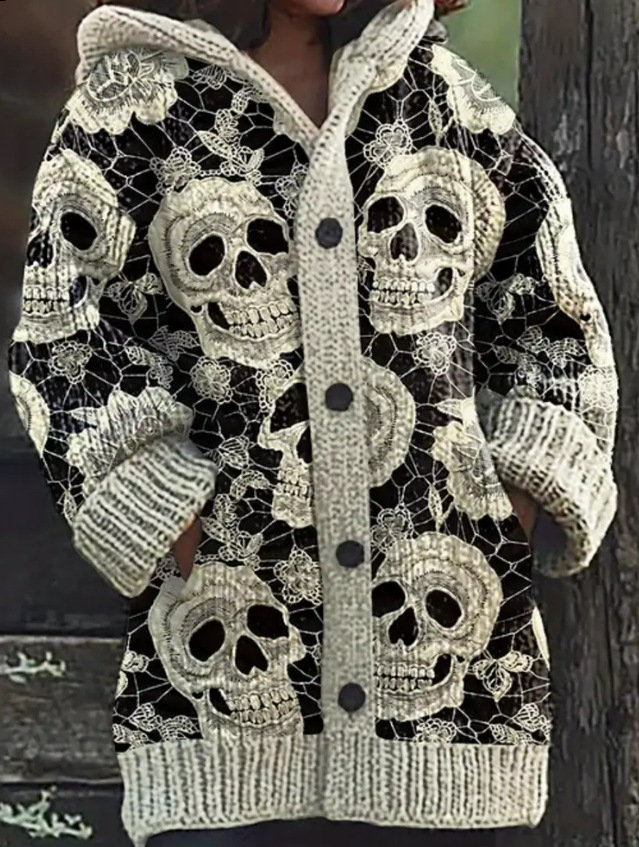 Retro Fashion 3D Printed Women's Casual Hooded Cape Coat